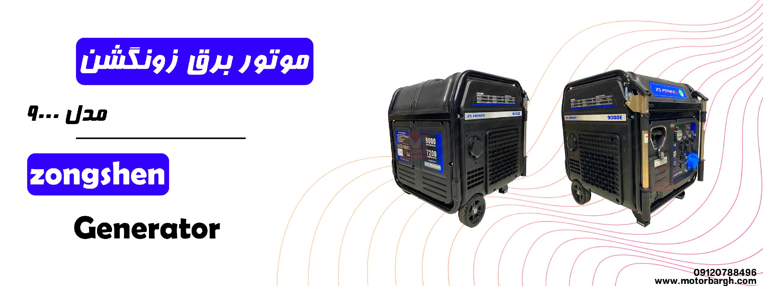 موتور برق زونگشن 9000 یکی از پرفروش ترین محصولات کمپانی زونگشن می باشد. این موتور برق قدرتمند دارای توان ماکسیمم 8.5 کیلو وات و توان دائم 8 کیلو وات می باشد. این موتور برق دارای ولتاژ AC خروجی 220 ولت و ولتاژ DC خروجی 12 ولت می باشد. این موتور برق دارای سیم پیچ صد در صد مس می باشد و دارای سیستم تنظیم و تثبیت ولتاژ AVR نیز می باشد. این موتور برق دارای فرکانس 50 هرتز می باشد و صدای تولیدی آن 73 دسیبل است. این موتور برق به صورت هندلی و استارتی راه اندازی می شود.