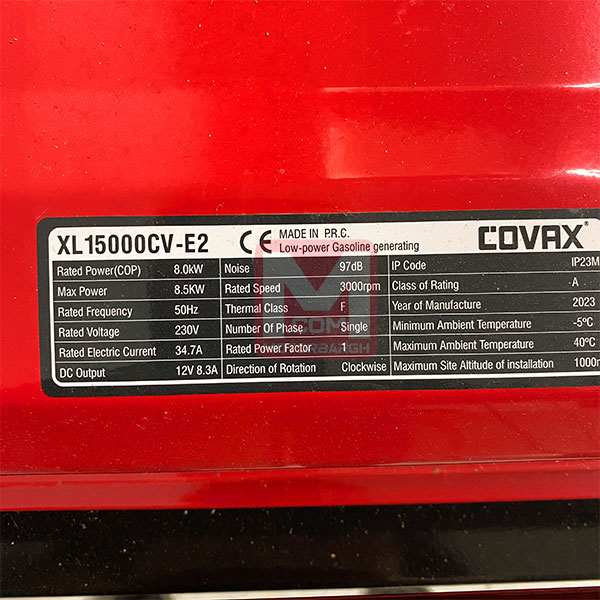 موتور برق کواکس 15000 دارای توان ماکسیمم 5.8 کیلو وات و توان دائم 8 کیلو وات می باشد. این موتور برق دارای نمایشگر دیجیتال می باشد و سوخت مصرفی آن نیز بنزین می باشد. حجم باک سوخت این موتور برق 40 لیتر می باشد و همچنین دارای سیستم راه اندازی هندلی و استارتی می باشد. این موتور برق داری سیستم خنک کننده هواخنک می باشد و همچنین دارای سنسور سطح روغن نیز می باشد. حجم باک روغن این موتور 1.1 لیتر می باشد. این موتور برق دارای دو عدد خروجی صنعتی 230 ولت می باشد.