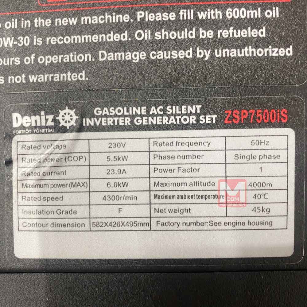 موتور برق دنیز 7500 دارای توان ماکسیمم 6 کیلو وات و توان دائم 5.5 کیلو وات می باشد. این موتور برق در سری سایلنت قرار می گیرد و صدای تولیدی آن بسیار کم می باشد. وزن این موتور برق 45 کیلوگرم است و با چرخ و دسته به راحتی قابل حمل است. این موتوربرق دارای سم پیچ تماما مس می باشد و همچنین دارای سیستم تنظیم و تثبیت ولتاژ نیز می باشد. ظرفیت باک سوخت این موتور برق 10 لیتر می باشد.