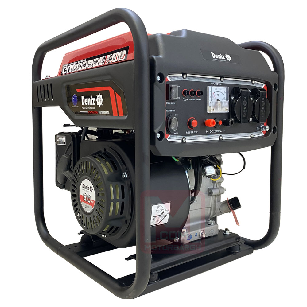 موتور برق اپن فریم اینورتر دنیز مدل ZSP6500io، دارای 2 پورت خروجی 230 ولت AC با آمپر دائم 18.9A می باشداین موتور برق دنیز با توان دائم 4.7 کیلووات و توان ماکسیمم 5.2 کیلو وات تولید شده است که شما می توانید از آن برای تجهیزات منازل و پزشکی استفاده نمایید. و دارای سیم پیچی مس می باشد.