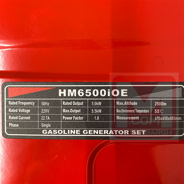 موتور برق هونامیک مدل HM6500IOE | توان ماکسیمم ۵.۵ کیلووات، توان دائم ۵ کیلووات |