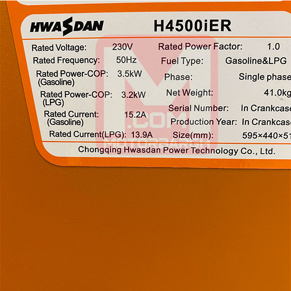 این موتور برق از بهترین موتور برق با فناوری روزآمد کمپانیجدید هواسدان است که به خاطر استفاده از سوخت های بنزین، گاز طبیعی و گاز مایع (LPG) به موتور برق دو گانه سوز معروف شده اند. توان ماکسیمم خروجی موتور برق هواسدان مدل 4500، 4کیلووات است و توان دائم آن 3.6 کیلووات می باشد.