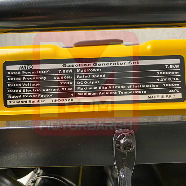این موتور برق بنزینی دارای یک پریز سه شاخه قفل شو و یک پریز معمولی با توان ماکسیمم 7.5 کیلووات و توان دائم 7 کیلووات است که مجهز به سیم پیچ تمام مس با مقاومت و رسانایی بالا و رگلاتور ولتاژAVR برای تولید برق بدون نوسان و پایدار است. موتور برق راتو 10500 با داشتن نمایشگر ولتمتر عقربه ای و بدنه ای محکم، گاورنر و هشدار دهنده سطح روغن می تواند طول عمر و راندمان بهنیه ای از این مولد برقی به شما ارائه کند.