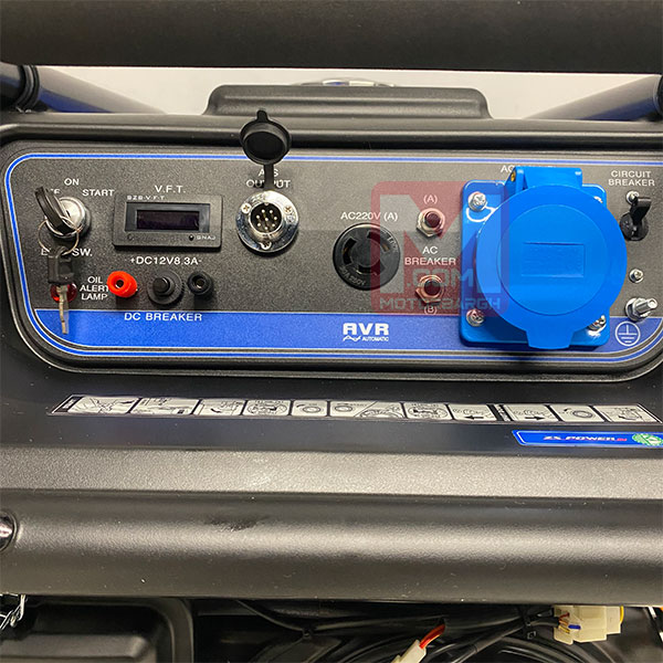 تعداد خروجی AC آن نیز 2 عدد دوشاخه است و همچنین دارای نمایشگر عقربه می باشد. این موتور برق دارای ATS نیز می باشد. بوسیله ATS شما می توانید موتور برق خود را به مدار خانه متصل کنید و زمانی برق قطع می شود دستگاه به طور خودکار روشن می شود و برق را وارد مدار خانه می کند.